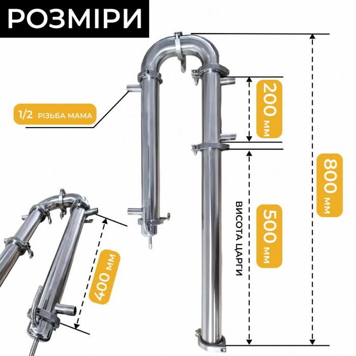 - Дефлегматор 1,5 дюйма, 4 трубок, 200 мм, выход 1/2 резьба МАМА - 1шт.