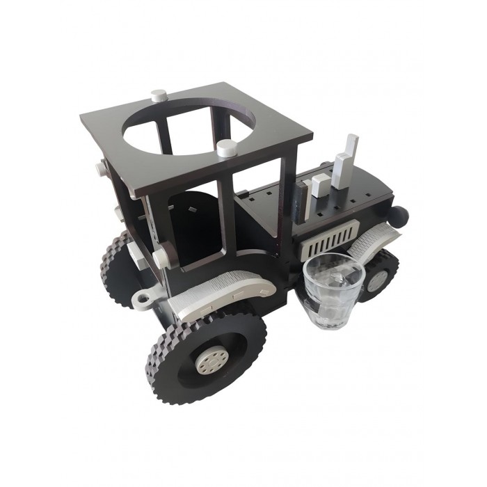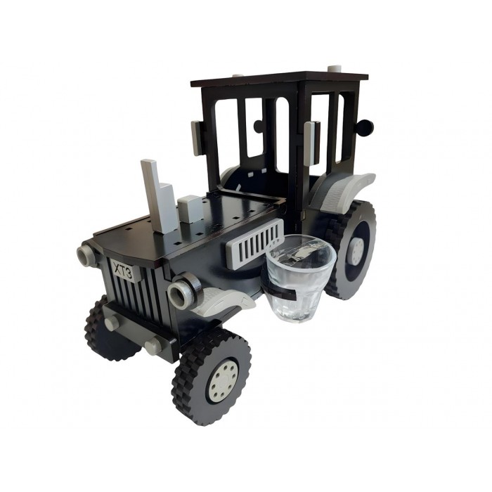 Міні-бар являє собою комплект з дерев'яної підставки у формі трактора, скляних стопок у кількості 2 штуки.