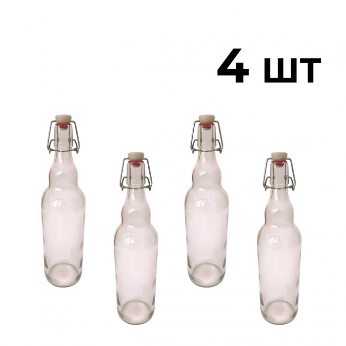 Пляшка Бугельна, скляна (прозора) 1 л. з бугельною пробкою, 4 шт