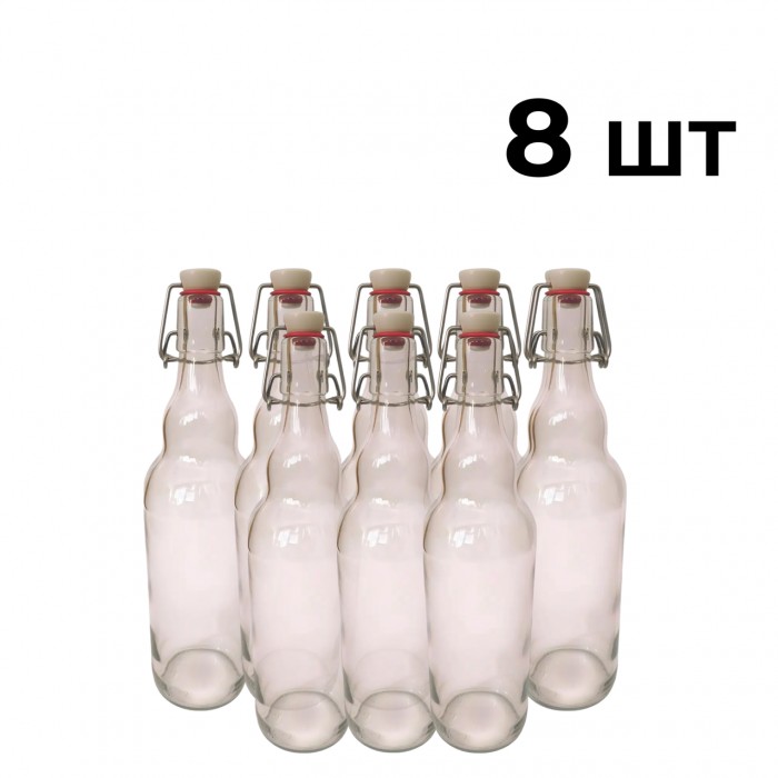 Пляшка Бугельна, скляна (прозора) 1 л. з бугельною пробкою 8 шт.
