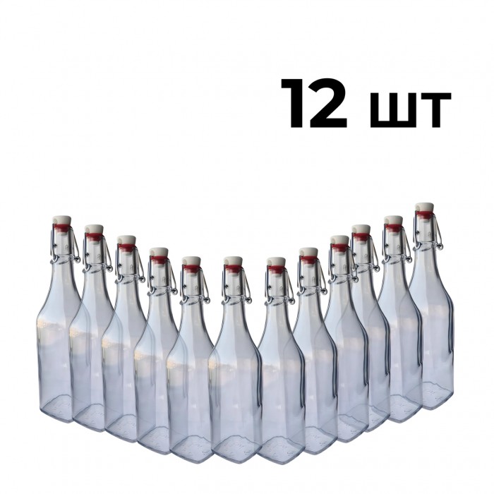 Пляшка Квадратна Бугельна, скляна (прозора) 0,5 л. з бугельним корком 12 шт.