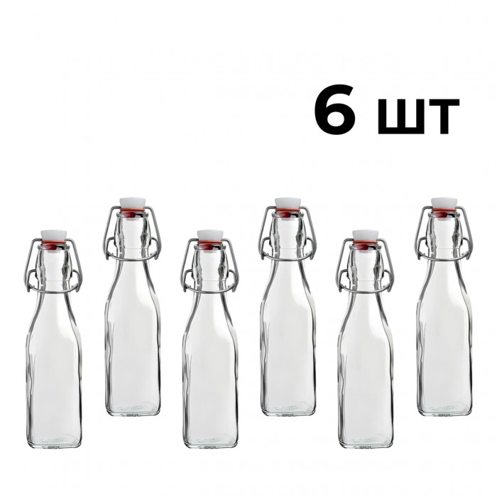 Пляшка Квадратна Бугельна, скляна (прозора) 1 л. з бугельною пробкою 6 шт.