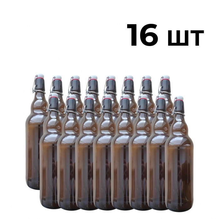 Пляшка скляна 1 л із бугельною пробкою, 16 шт