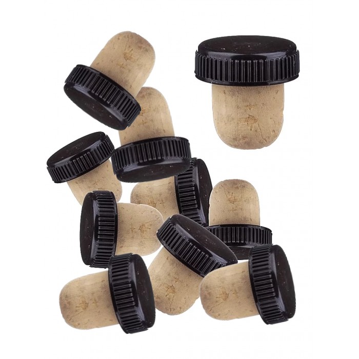 Т-корок складається з двох елементів: пластикового капелюшка чорного кольору і агломерованої (пресованої) коркової пробки.