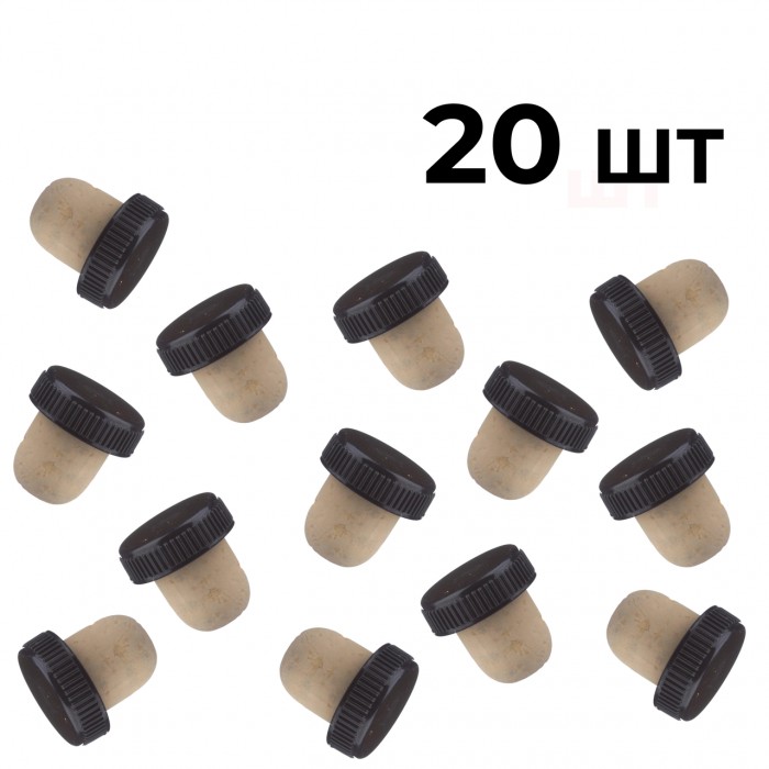Корок корковий, коньячний з пластиковим ковпачком, 28x8x19 мм (20 шт.)